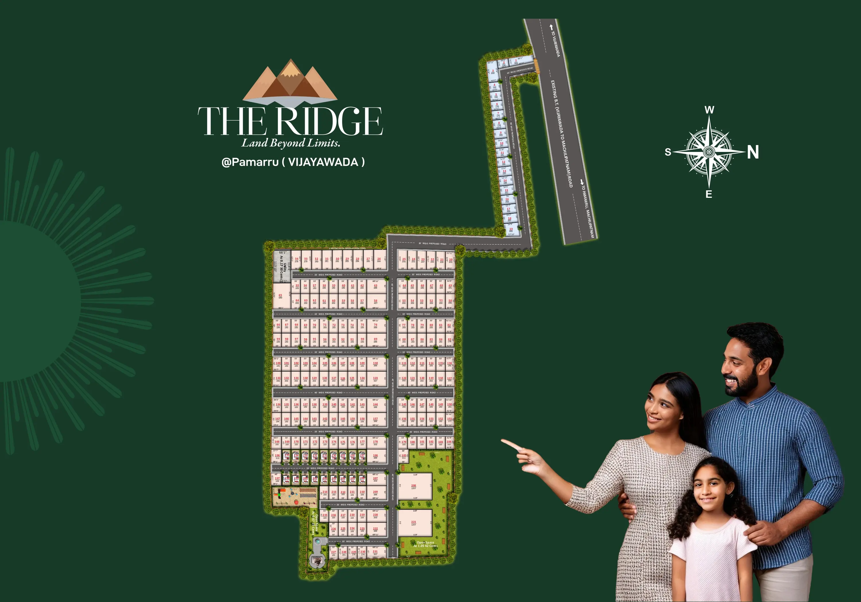 Nestled amidst nature and designed for discerning investors, The Ridge Open Plots offers you more than just land-it offers a lifestyle. Strategically located for seamless connectivity yet enveloped in peace, The Ridge blends the charm of open skies with the promise of a flourishing future. Here, every square foot is a canvas for your dreams. Surrounded by green landscapes and fresh air,your mornings begin with nature's whisper. Wide internal roads, secure gated entry, and clear titles make The Ridge a smart choice. Build your dream villa, farmhouse, or weekend retreat in Vijayawada — a location that's growing every day.